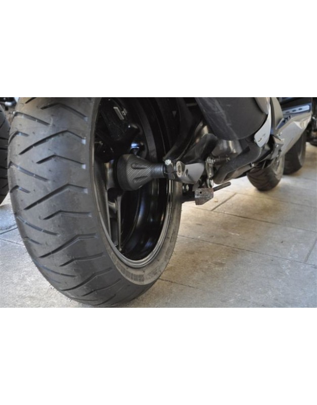Cache axe de roue pour TMAX de 2008 à 2011, couleur carbone mat, vendu à l’unité. (photo non contractuelle) Ne convient pas pour un TMAX avec ABS !
